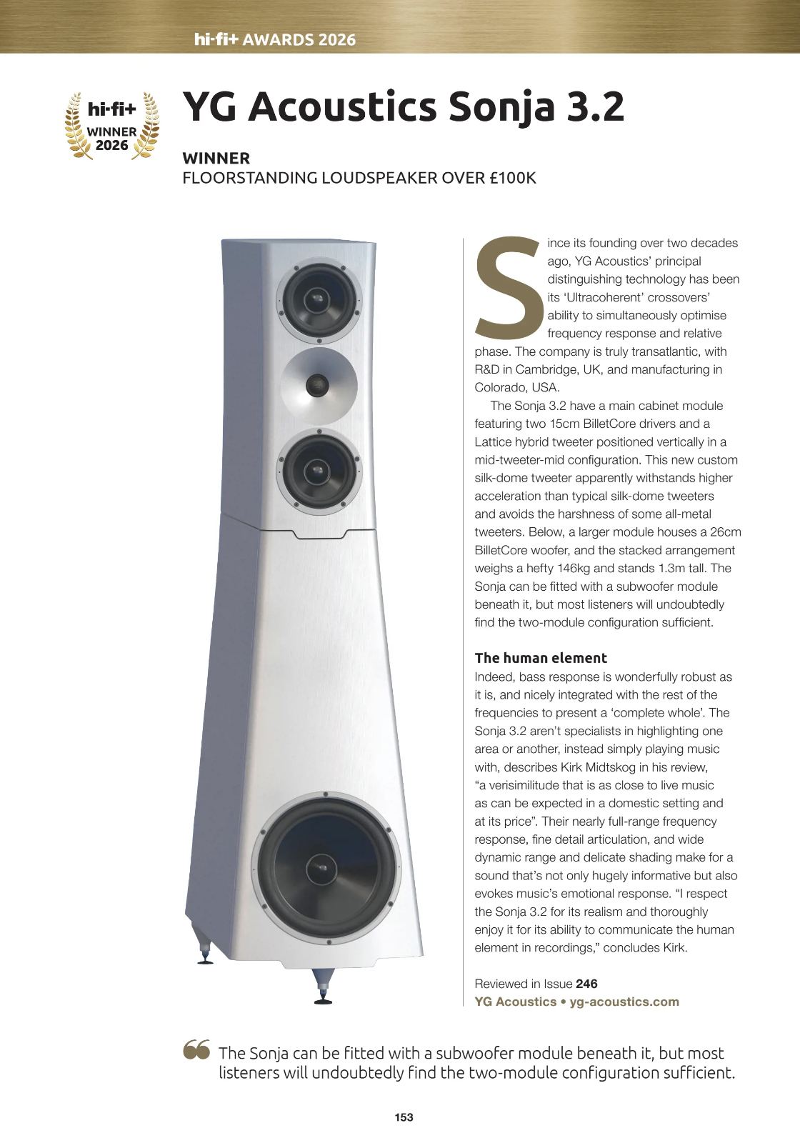 Sonja 3.2 Hi-Fi+ Ödülü